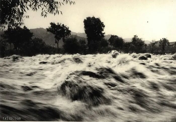 31、汉江支流洪水奔腾。南怀谦神父以当时简陋的摄影器材,捕捉汹涌澎湃的气势,实在难能可贵。