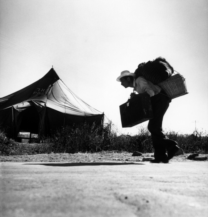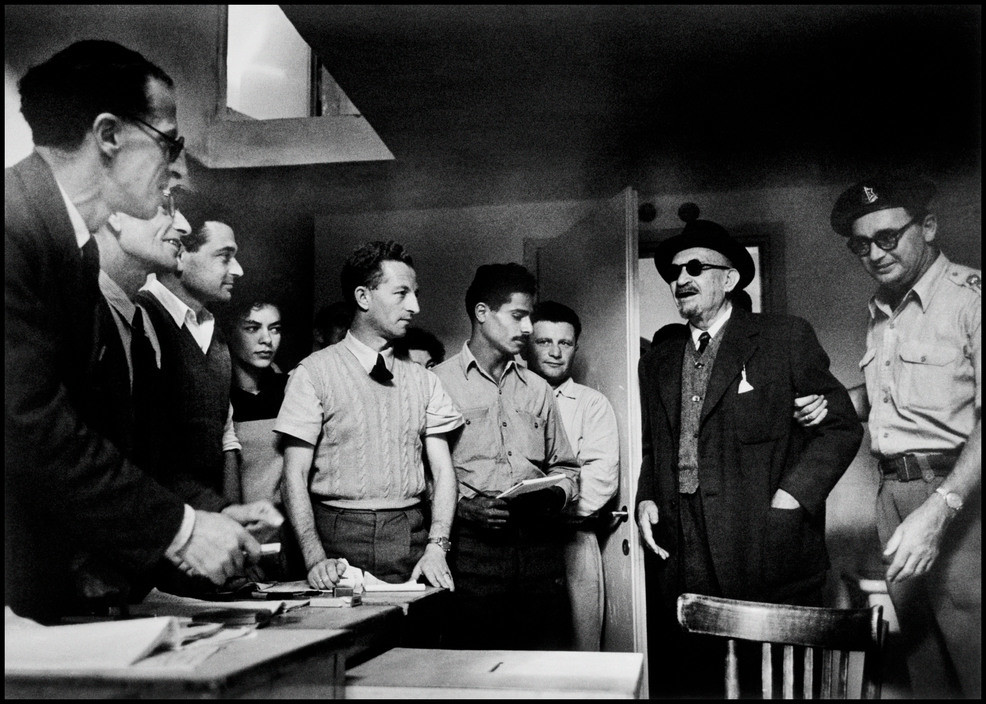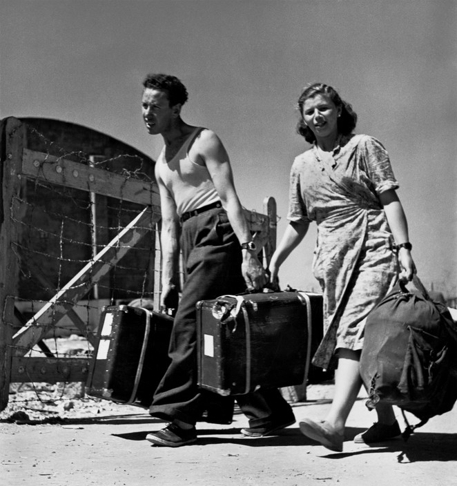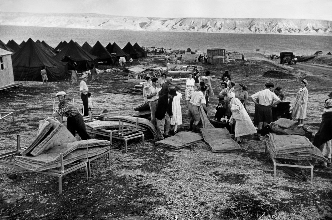 1948年5月14日英国宣布巴勒斯坦委任统治终止,同日以色列发表独立宣言,建国后以色列向全世界犹太人敞开了大门,掀起了空前的移民潮.1948年至1951年,有近70万犹太移民涌入以色列。在1948年至1950年间罗伯特·卡帕多次来到以色列,以记录移民潮、中转营以及新生的犹太国家面临的不确定性。