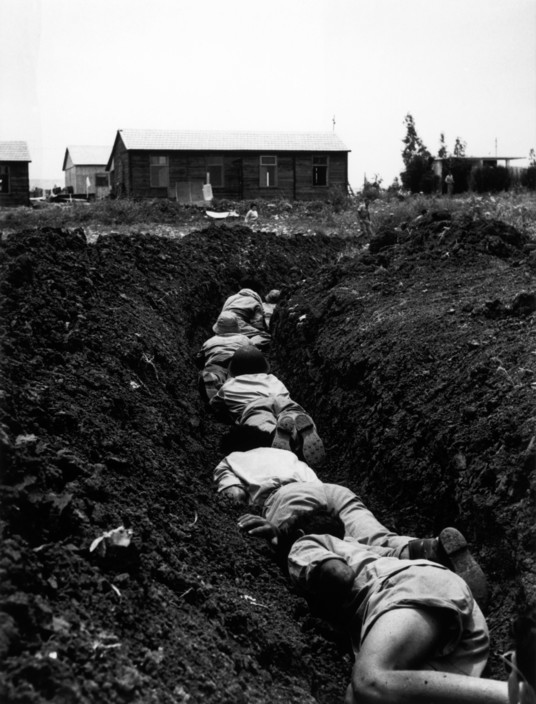 ©在阿拉伯空袭期间躲在战壕中的犹太人,1948年