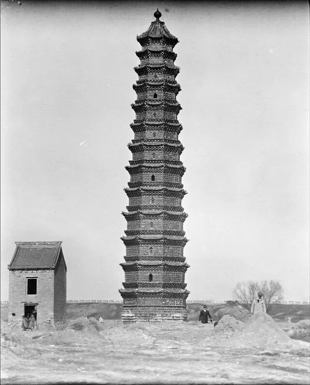 铁塔始建于公元1049年(北宋皇祐元年),素有“天下第一塔”之称。铁塔高55.88米,八角十三层,因此地曾为开宝寺,又称“开宝寺塔”。又因其遍体通彻褐色琉璃砖,混似铁铸,从元代起民间称其为“铁塔”