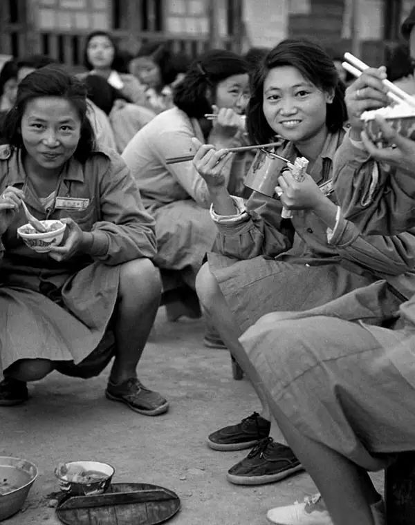 1950年,台湾,接受后勤服务培训的"少女训练团"的年轻女孩在就餐。