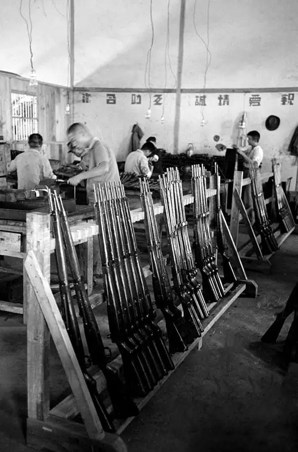 1950年,台湾, 工人生产使用美国弹药的日式步枪。