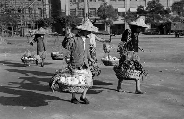 1950年,台湾,挑着蔬菜的台湾妇女。