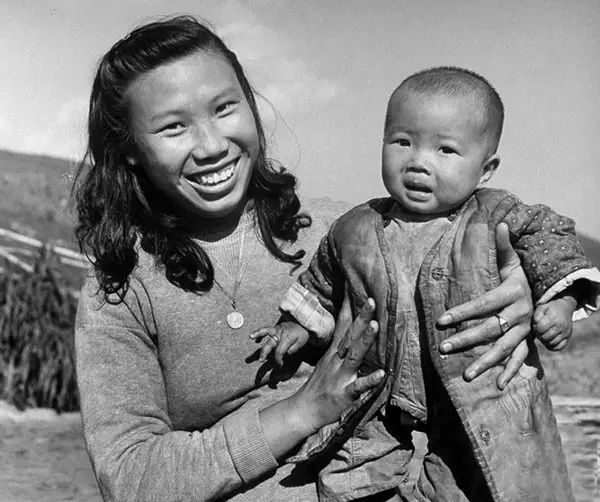 1950年,台湾,年轻女子抱着的这个小孩是她的弟弟。