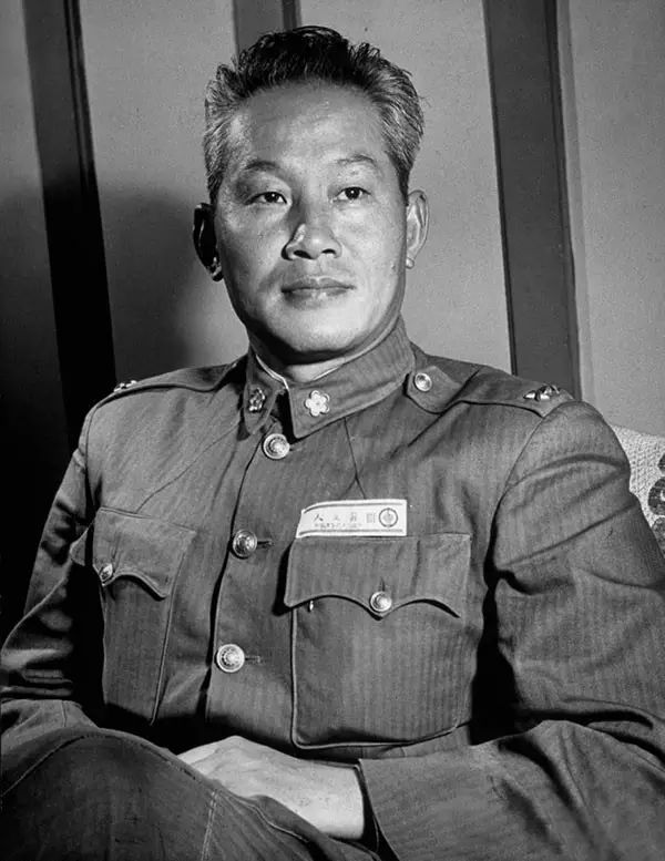 1950年,穿着传统服饰坐在椅子上的国民党政府行政院长兼国防部长阎锡山。