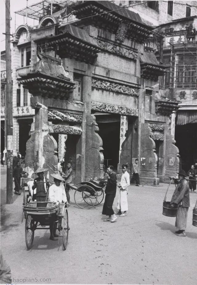 广州街头的店铺和行人