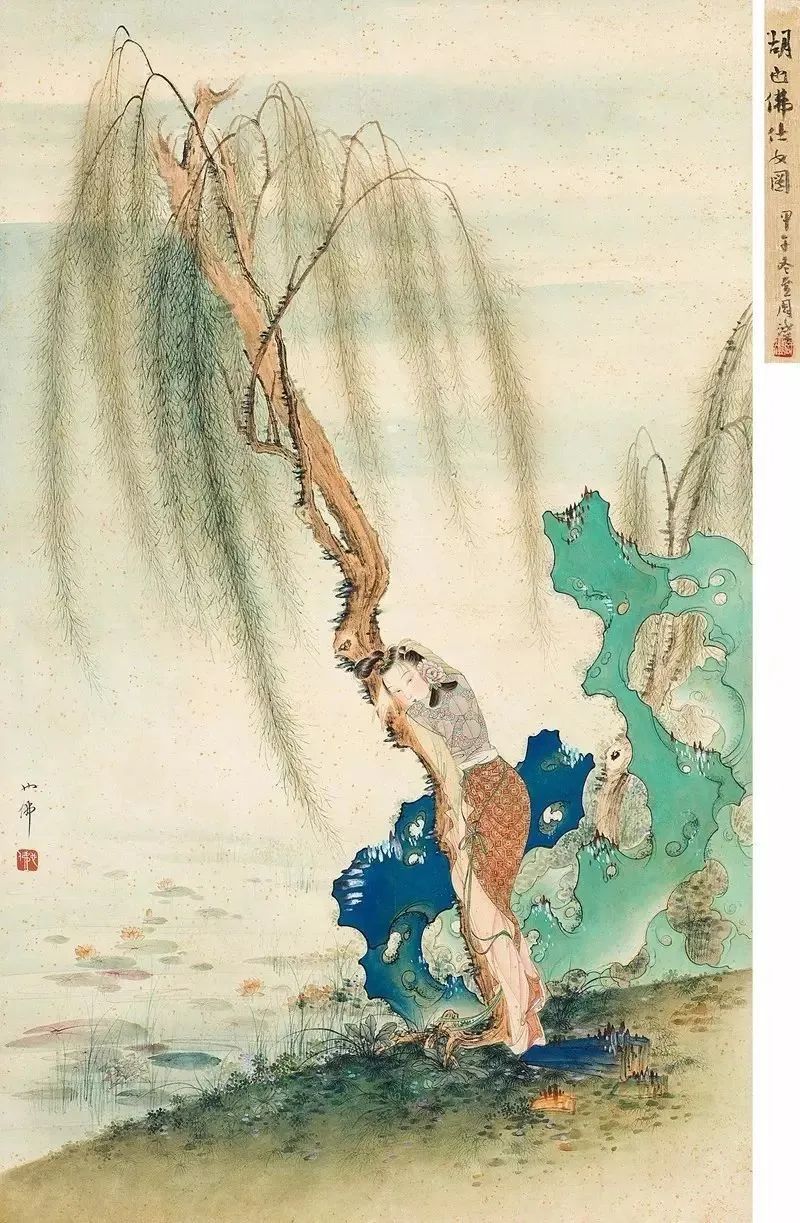 胡也佛不仅擅作仕女,间写宋元一路山水,隽逸过人。非常擅山水、走兽、花鸟。但是,他和绘画大师黄宾虹、石壶、黄秋园和陶博吾等人一样,一直到去世以后才慢慢为人所熟知。董桥曾在《胡也佛的女人们》一文中说,前几年香港拍卖胡也佛八开《金瓶梅》册页卖了二十几万港币,他弄到了一小幅胡也佛的《金瓶梅》工笔春宫,也精致得惊人。董桥为胡也佛感慨,“才华这样高,他的遗作没道理不火红!”。