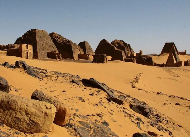 在距离苏丹首都喀土穆240余公里的沙漠中,有一片比整个埃及的金字塔数量还要多的金字塔群,这220座金字塔是苏丹历史上著名的麦罗埃王朝的陵墓群。这些金字塔群坐落于苏丹东部沙漠,分布于尼罗河沿岸。