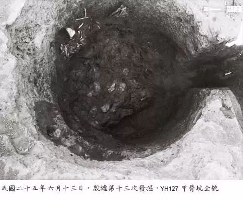 第十三次发掘,自1936年3月18日至6月 24 日。由郭宝钧主持,地点在小屯村北B、C两区,开探方47个,面积共4700 平方米。发现版筑基址4处,灰坑127个,墓葬181座(其中部分为祭祀坑)。H127甲骨坑出土甲骨文17096片,其中完整龟甲达300版之多,为殷墟发掘以来最为惊人的发现。