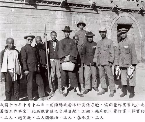 工作人员:李济、董作宾、吴金鼎、刘屿霞、王湘、周英学、李光宇
