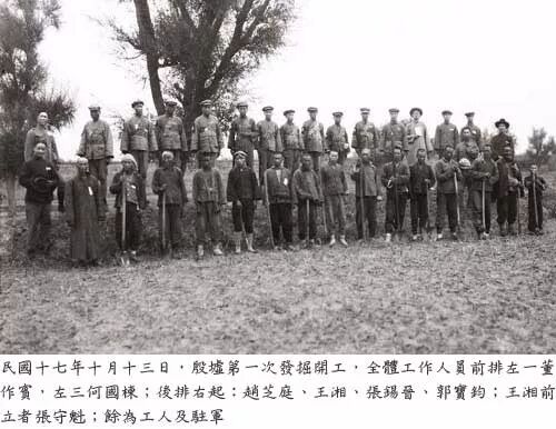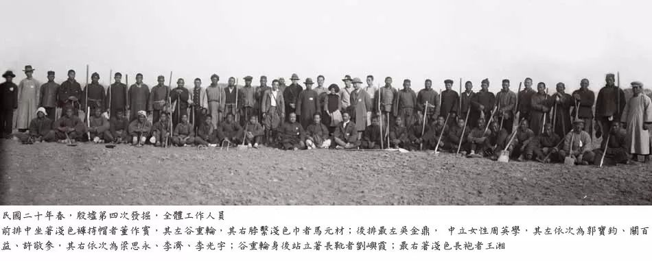 工作人员:李济、董作宾、梁思永、吴金鼎、郭宝钧、李光宇、刘屿霞、王湘、周英学