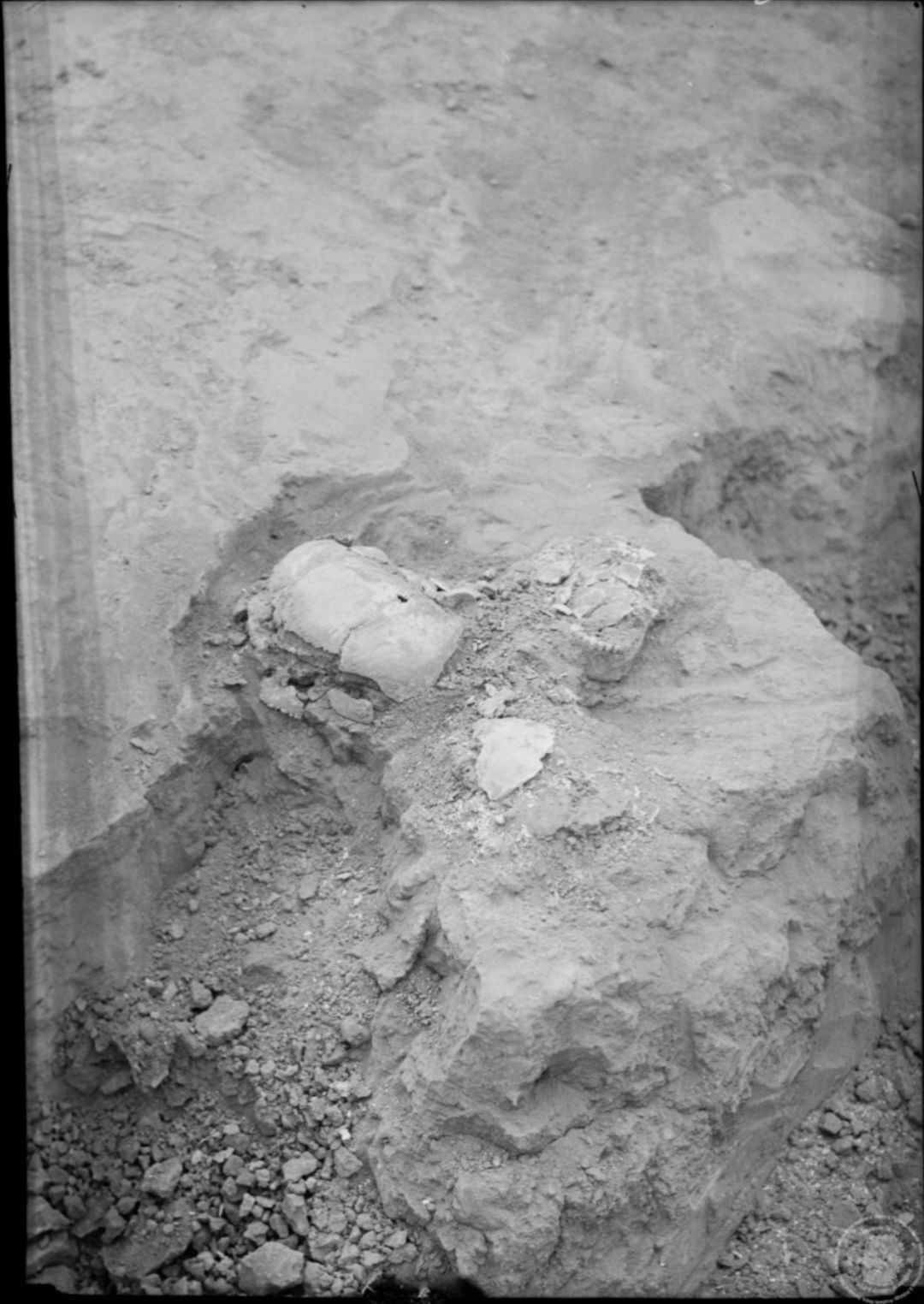 葬式类型:单人葬。墓主骨骸早已腐朽,墓中有十余个头骨,应该是殉葬之牺牲。但是本墓被盗掘惨酷,可能还有更多的殉葬骨骸。
