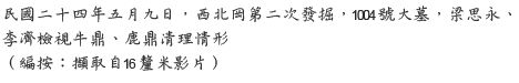 工作人员:梁思永、石璋如、刘耀、祁延霈、李光宇、王湘、胡厚宣、尹焕章