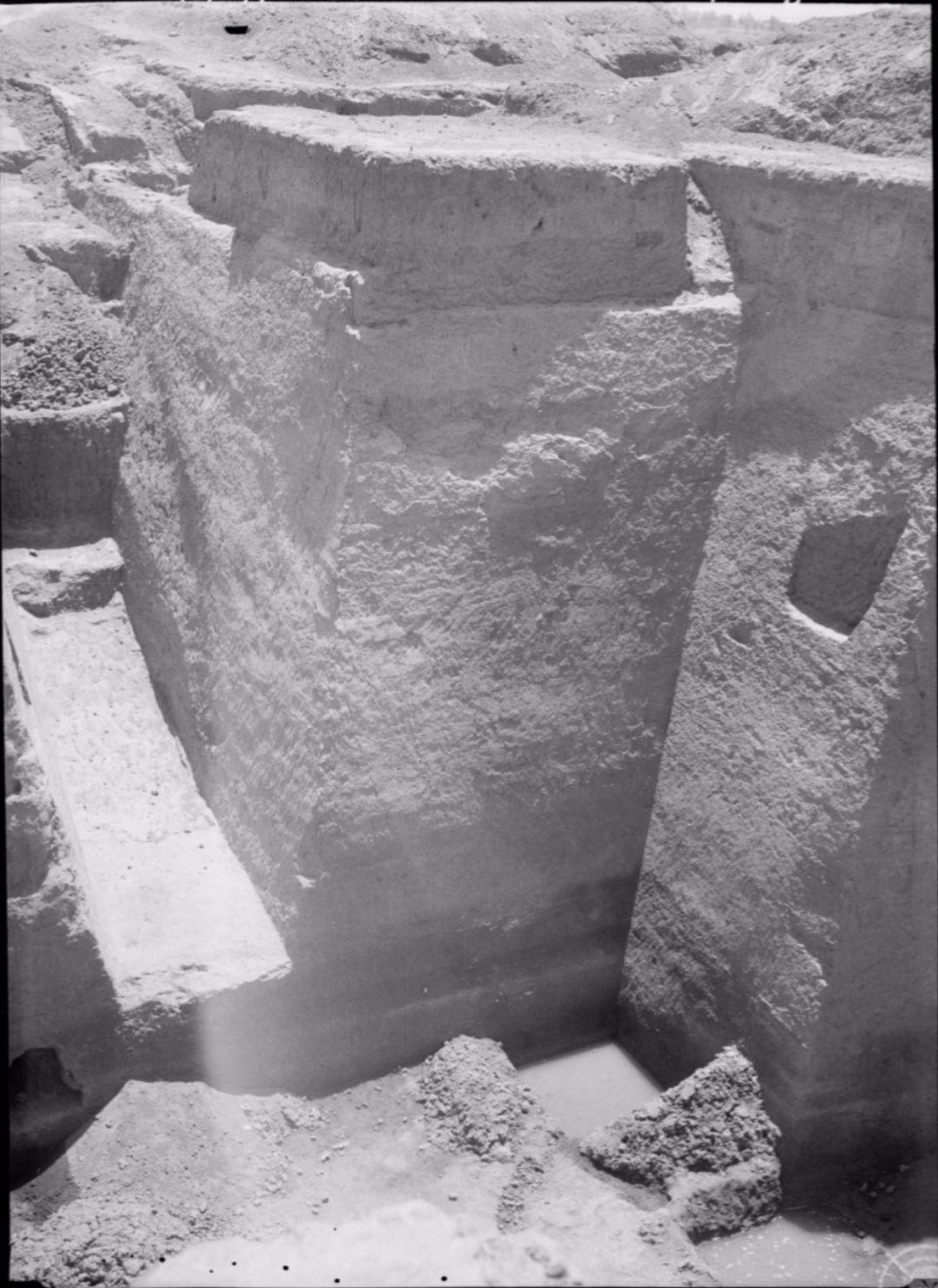 周壁情形:东西南北各有一条墓道,四壁不甚平整,纵看向外微倾成陡坡,平看只北壁向外凸,余三壁皆向内凹入,纵看,西壁较东壁立陡,南北两壁坡度略同