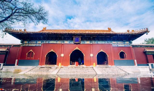 又因为乾隆皇帝诞生于此,雍和宫出了两位皇帝,成了“龙潜福地”,所以殿宇为黄瓦红墙,与紫禁城皇宫一样的规格。