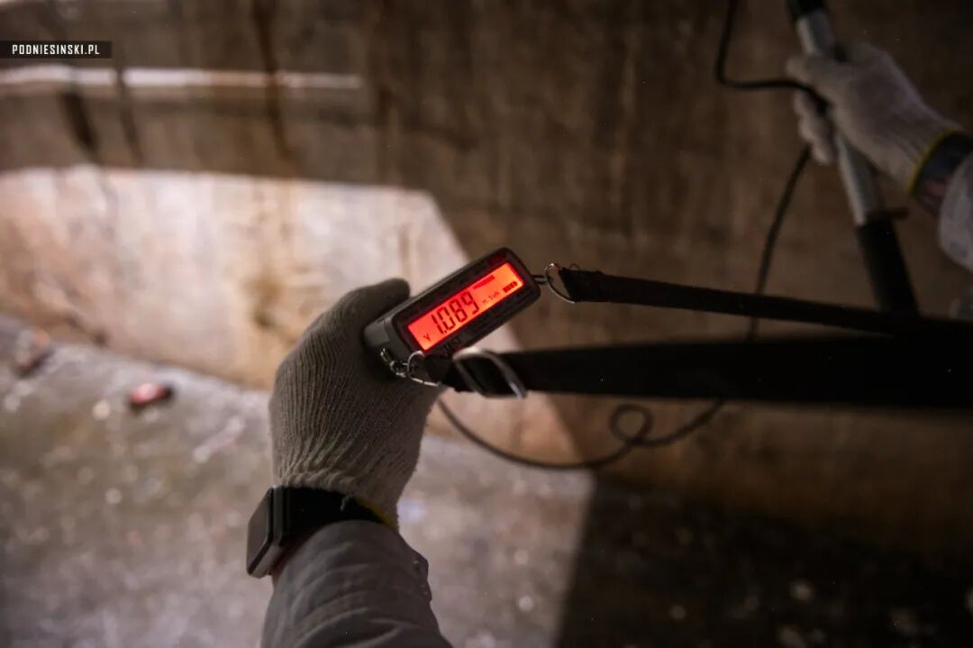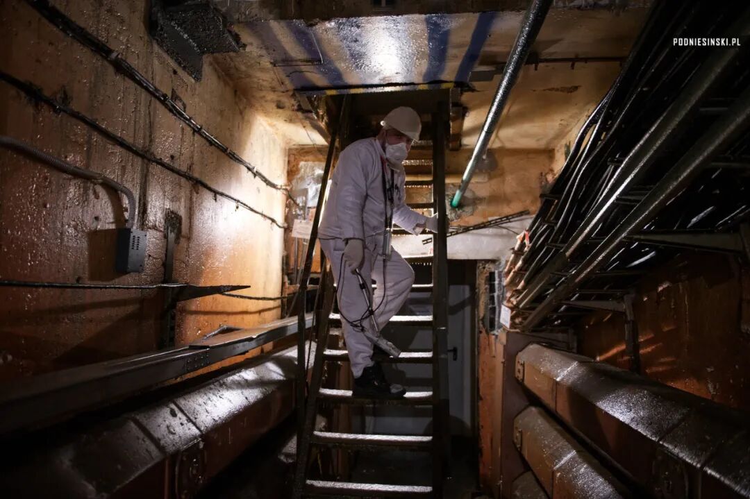 Arkadiusz Podniesiński 说服了工作人员,可以尝试进入旧石棺。为了安全,需要计量工程师走在前面。图为通往旧石棺层的楼梯上。