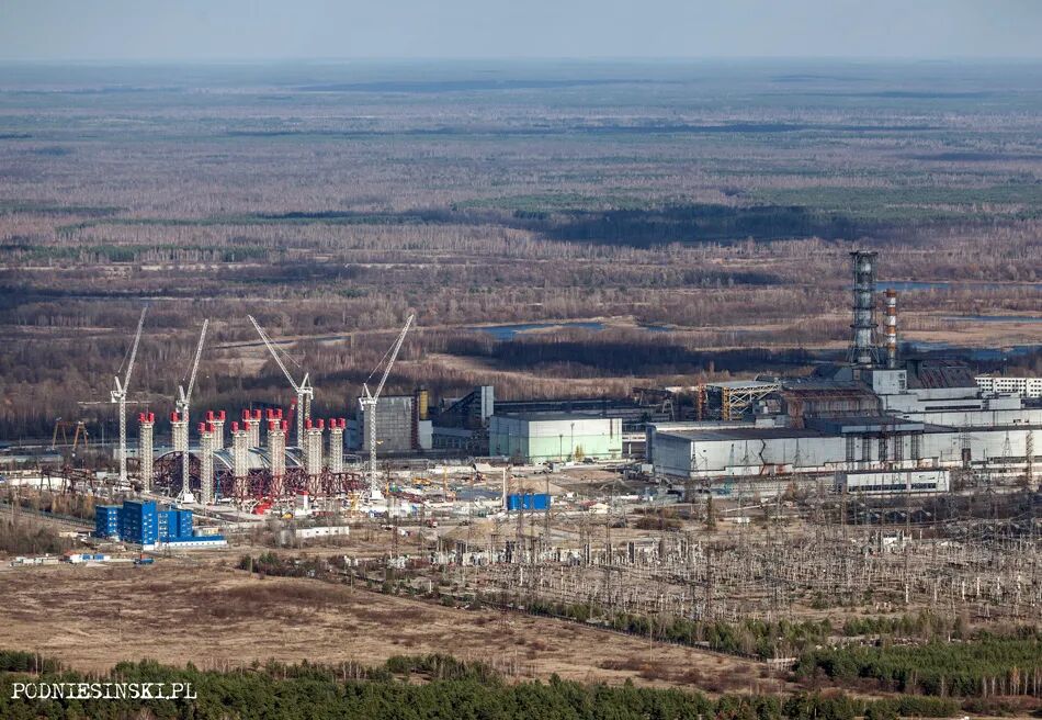 2012年12月,切尔诺贝利核电站与正在修建的新石棺。