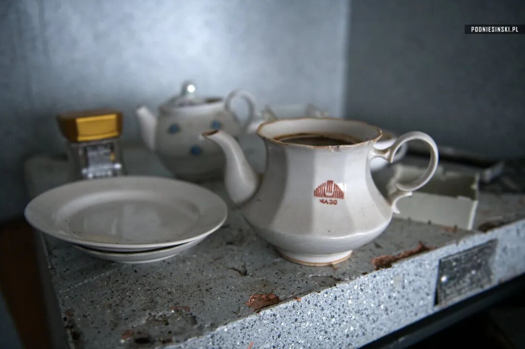 BK-2大楼内,印有核电站标志的茶具。