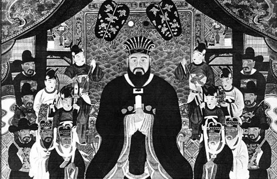 1372年,明王朝太祖朱元璋对中山王察度发布诏谕。山北、中山、山南三王向明政府朝贡。琉球成为明王朝的藩属。此后,琉球国一直按照明朝的典章制度隔年进贡,谨守臣节。