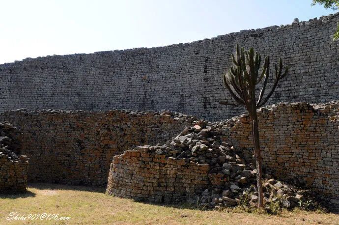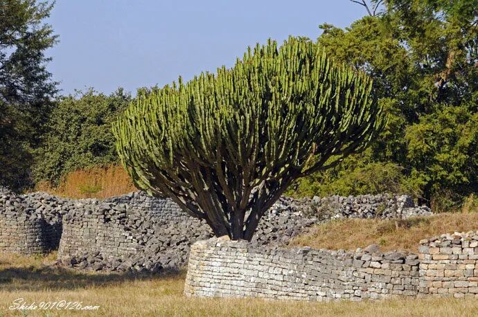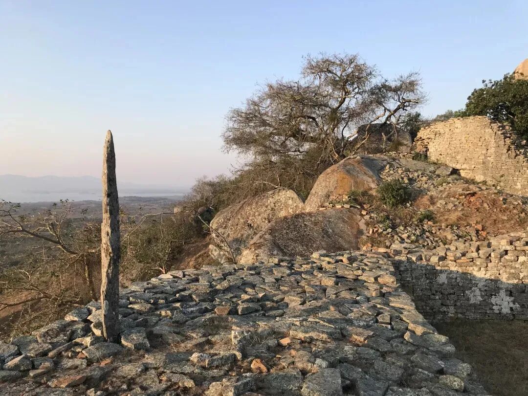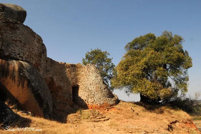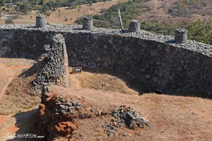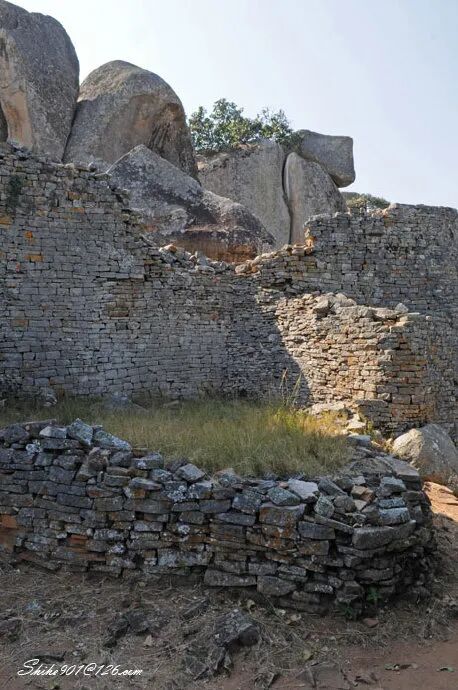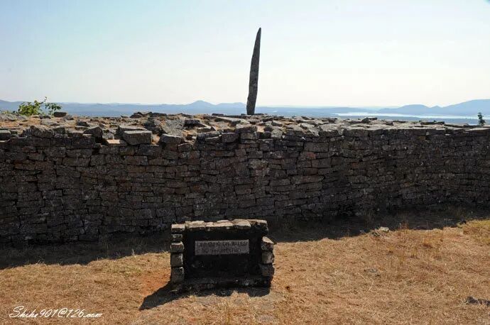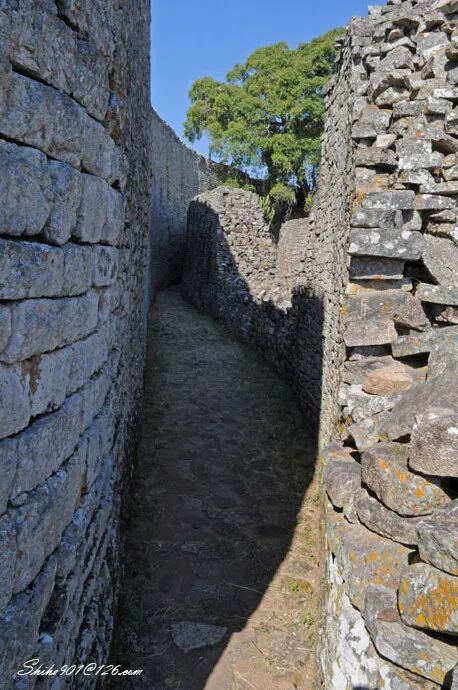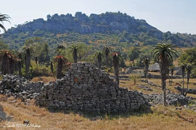 大津巴布韦遗址的构成主要有3个内容。其一,位于山顶上的类似王宫的遗址。当我走在那条由砾石垒成的弯弯曲曲通往山顶的狭长通道时,看着两边阴森陡峭的花冈岩石墙,情不自禁想起中国古代战争中使用过多次的“一夫当关,万夫莫开”的成语。要知道,这条通道正是通往姆韦尼·姆塔帕(Mwene Mutapa,即国王)指挥军队的地方——位于山顶的一个类似观礼台的地方。经测定,山上发掘的早期铁器已经锁定为公元4世纪以前。山上有圣坛,可能用作宗教祭祀。