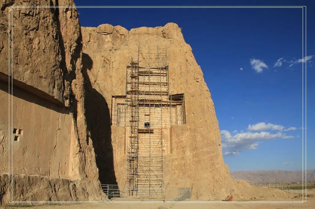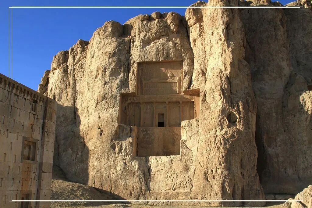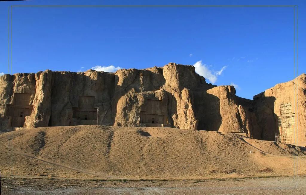 纳什洛斯坦亦称鲁斯塔姆崖壁Rustam,,尽管就是一座不高的山峰,然山崖的中间开凿着四座帝王陵墓。这里就是居鲁士大帝以后的几位波斯帝国国王即大流士一世、二世、阿尔塔薛西斯一世、谢西斯一世的安息之地。