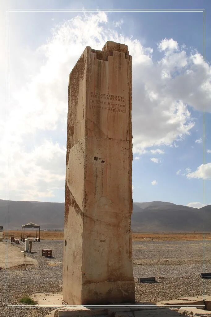 在他私人宫殿内的一个柱子上,刻有以古波斯文、埃兰文以及巴比伦文的楔形文字写成的铭文:“我是居鲁士,阿契美尼德之王,建造了此处。”