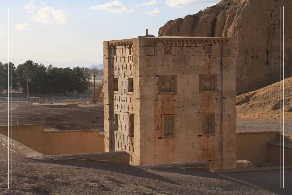 陵墓正前方有一座立方体石质建筑“Ka'ba-ye Zartosht”,被认为是一座琐罗亚兹德教火庙。