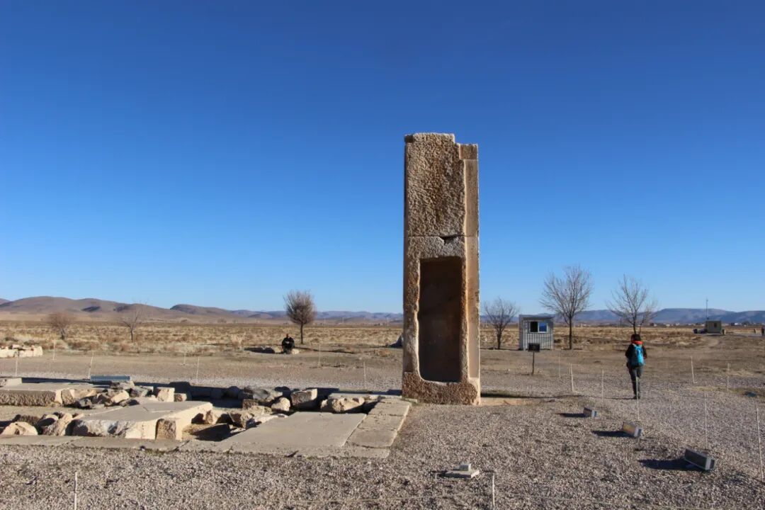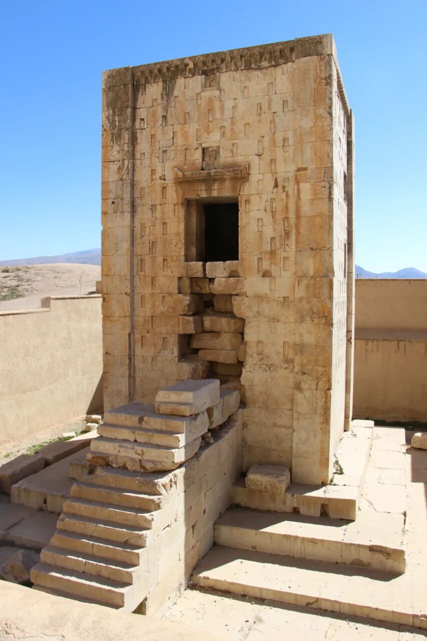 石塔:Stone Tower:14米高,每边宽7米,有3层基座,29层台阶,塔上装饰有百叶窗,是阿契美尼德王朝建筑的杰作。其作用一是被认为是冈比西斯Cambyses(居鲁士Cyrus的儿子)的墓,二是被认为是火神庙(Fire Temple),第三层被认为是国王举行加冕仪式的地方。