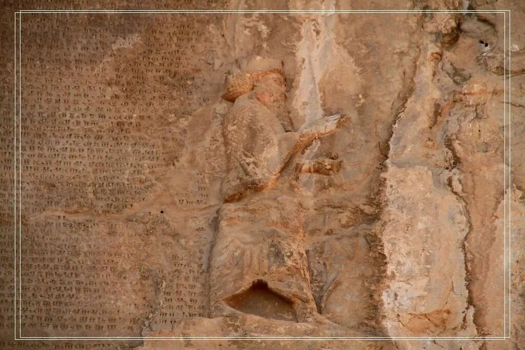 大流士一世这几位君王是阿契美尼德时期的,后来的萨珊王朝国王为了宣扬自己在跟罗马帝国争雄中的丰功伟绩,将自己的像也刻上了崖壁,要同古波斯帝国诸王并列以显示自己的伟大。崖壁上刻有大量楔形文字,君王们欲借用这些文字使自己流芳百世,然而由于语言的失传和自然界的风化侵蚀等原因,要解读这些文字十分困难。语言历史和文化方面的专家们经过几十年的努力,大部分的内容被世人所知。据说同样的内容有三种不同的语言—埃兰文、古波斯文、古巴比伦文写成。