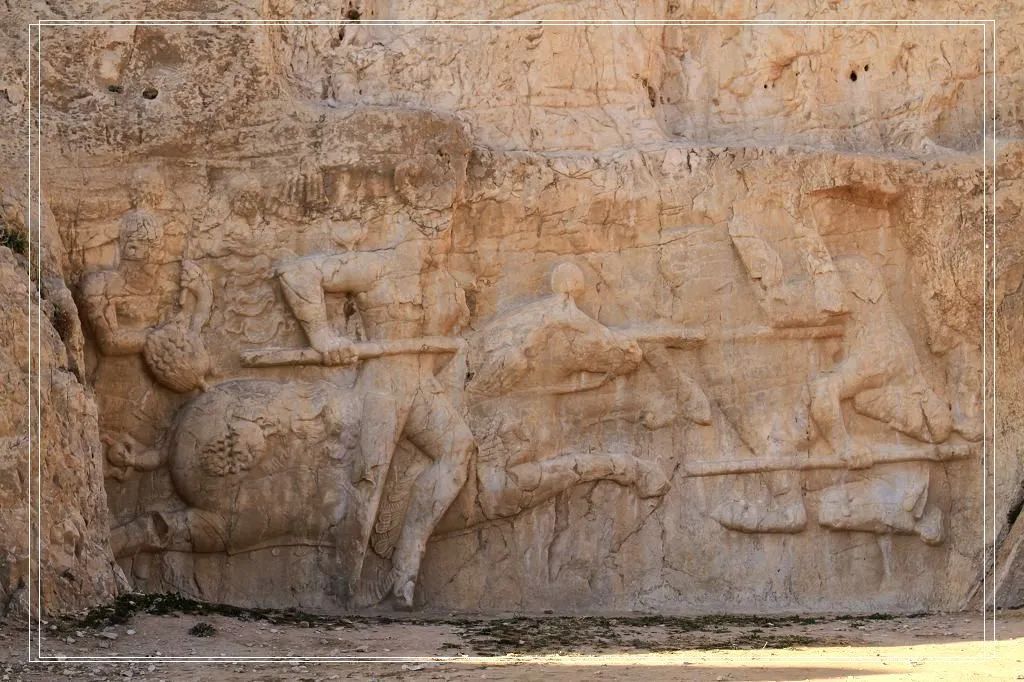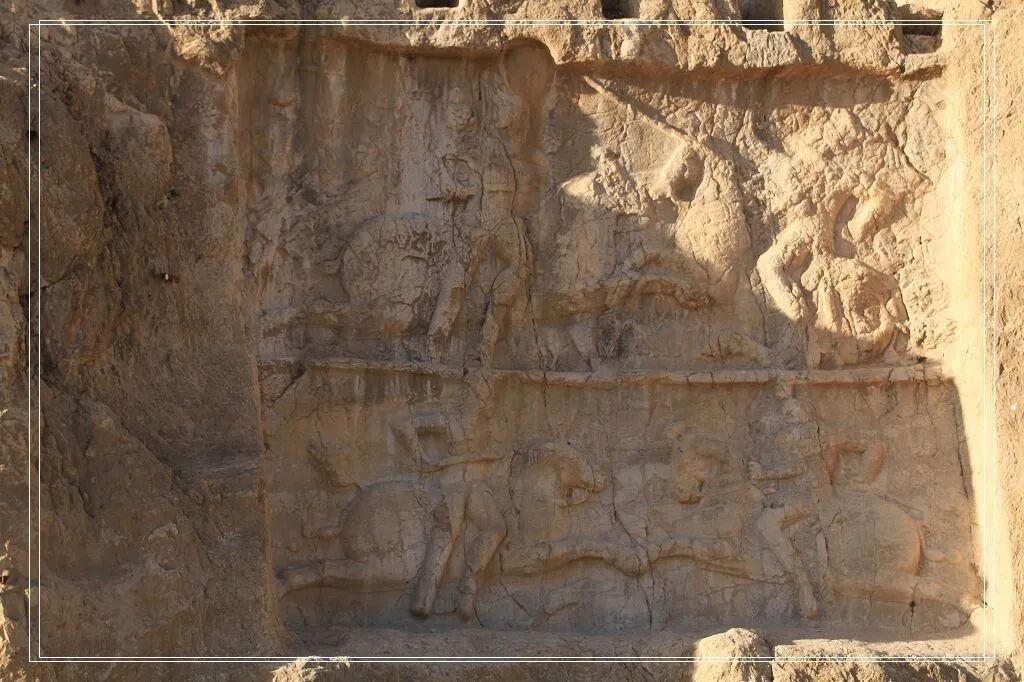 肖普尔国王是萨珊王朝的第二位皇帝,他的显赫功勋是俘获了罗马皇帝,保证了萨珊王朝在以后的四百年中政权的稳固。萨珊的国王们为了永远纪念他们的胜利功绩,在岩石上留下了巨型浅浮雕。
