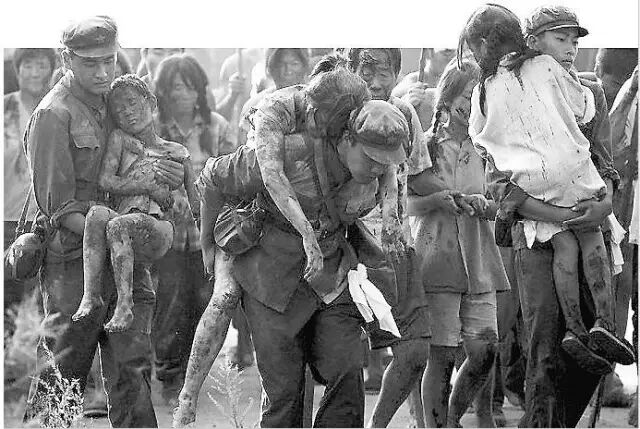 陆军二五五医院护士李洪义永远也不会忘记,一个女兵被一根水泥梁柱戳穿了胸膛,胸口血肉模糊;一个孕妇已快临产,她人已断气,下身还在流血。