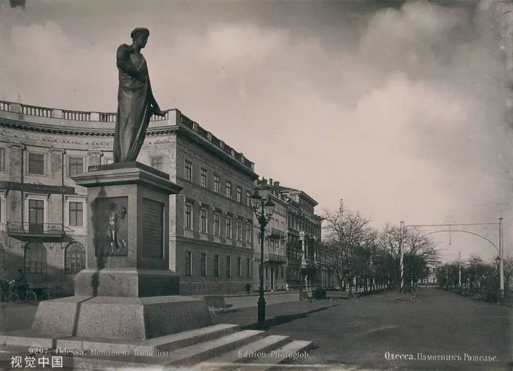 前苏联加盟共和国乌克兰。黎塞留公爵纪念碑,正对着敖德萨著名的波将金阶梯。