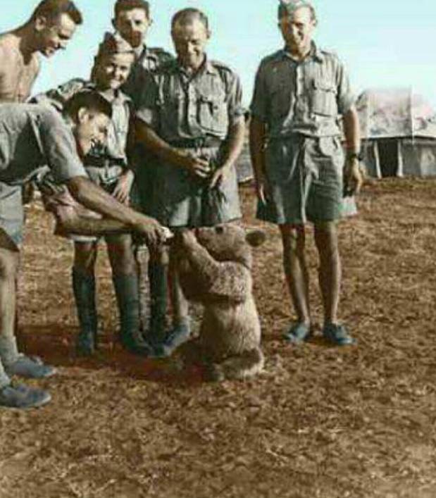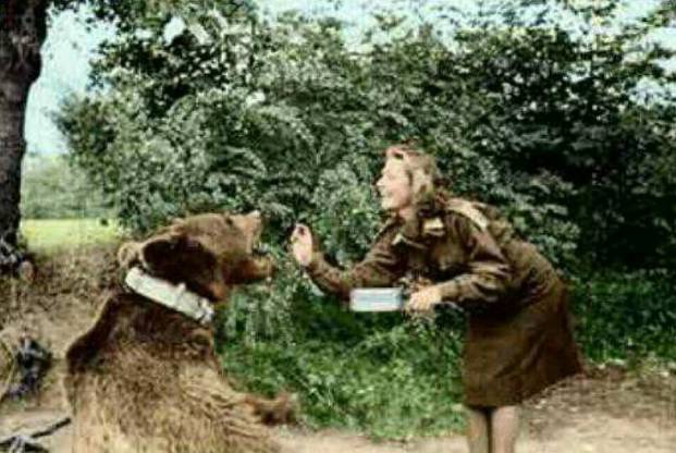 虽然在艰苦的战争期间,士兵们需要省下很多口粮给这头可爱的熊仔,但它在成长过程中也给士兵们带来了数不清的快乐, 与大家成为了亲密无间的伙伴。