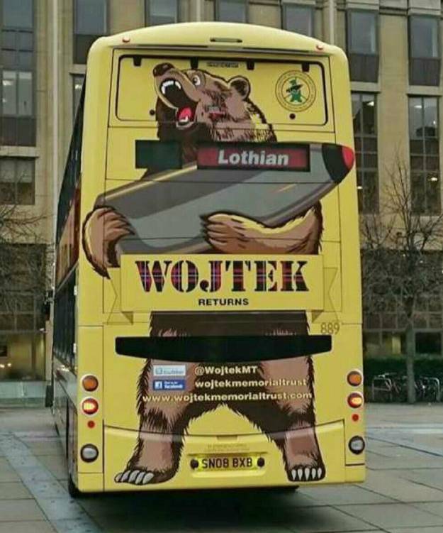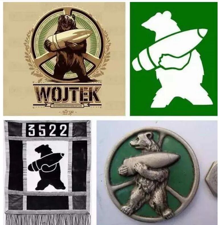 由于 Wojtek 的出现会带来胜利的曙光,被认为是上帝的福音,这支波兰部队把自己的军徽改成了 Wojtek,抱着炮弹的Wojtek!