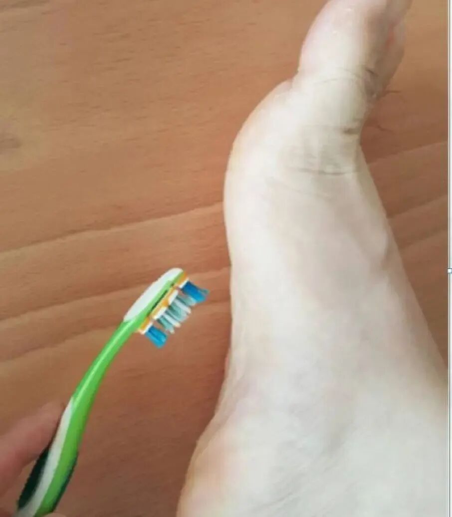 小刷子轻刷足底或手指叩击,频率:一次刷10下,每次3组。适用于扁平足的训练。