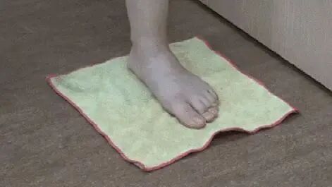 前脚掌抓地,脚趾适当屈曲用力抓毛巾,每次15下,每次3组。适用于扁平足的训练。