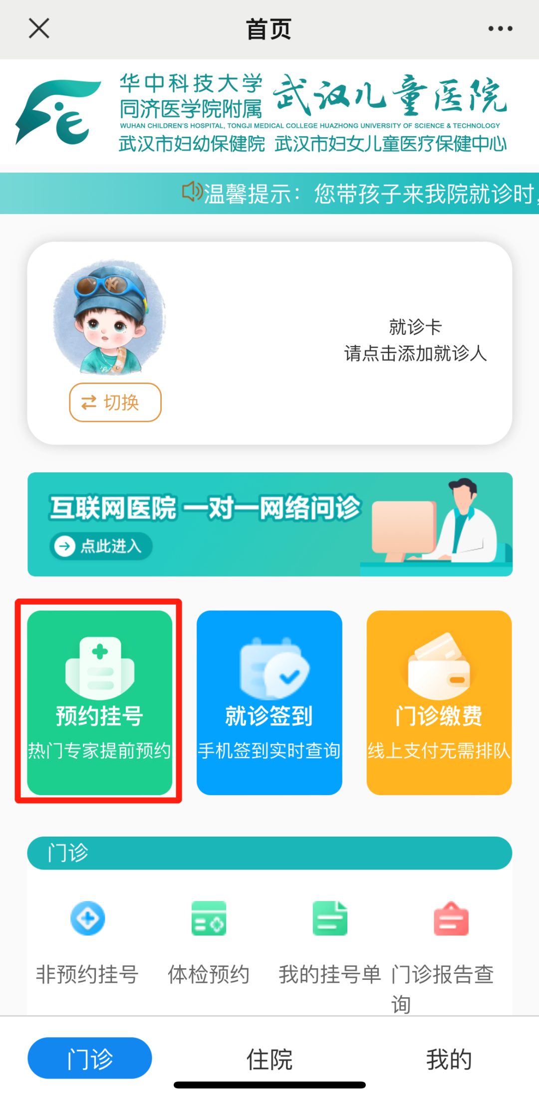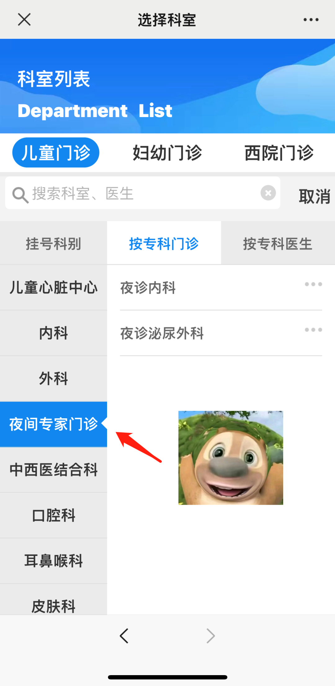 点击【门诊】-【预约挂号】-【夜间专家门诊】
