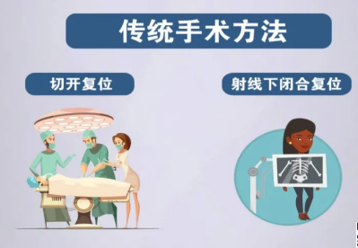 按照传统治疗方案,手术需要在X射线下进行,还要开刀打入钢板固定,术后会留下约5厘米长的刀口。