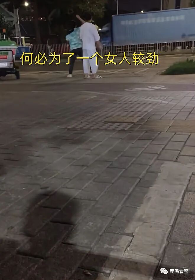 从争吵上升到拳头,被打的白衣男子不肯放手,两个大男人一前一后为了一个女人争执,真是把大老爷们的脸都丢尽了,路人唏嘘,脚踩两条船的女人有什么好争的?被骗的两个男人都是受害者,争风吃醋只为一时,太不明智。