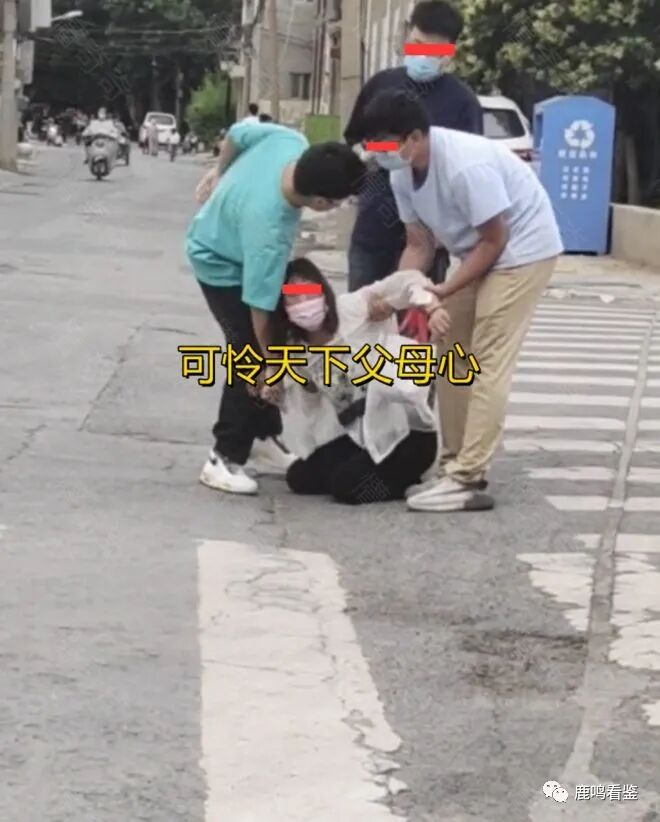 一个女中年女人跪在地上痛哭哀求着学校:再给次机会吧!穿蓝衣服的儿子就在旁边,拽着母亲想让她起来,对于儿子来说,这是刻骨铭心的一天,对于母亲来讲,这是她懊悔终生的一幕。