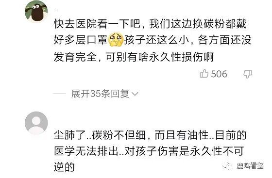 一位网友是这么说的,家长太无知了,每次处理打印机里的碳粉我都全副武装,戴了三层口罩,小心翼翼去清理,就是知道碳粉对人体伤害性巨大,以目前的医学无法将吸入体内的碳粉清除,将来孩子长大后会为今天感到懊悔不已。