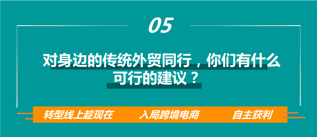 现在是一个很好的窗口时期,还没有形成红海,还有机会成为先入者。我们都知道现在外贸行业确实很困难,不过我身边大家想到的首先是转内销订单,电商大家都知道是很好的出路,但这是一个全新领域,特别是跨境电商,对很多传统外贸人来说是完全陌生的。有能力、也愿意投入时间和精力去尝试的,任何时候,抓住现在就是好时机。