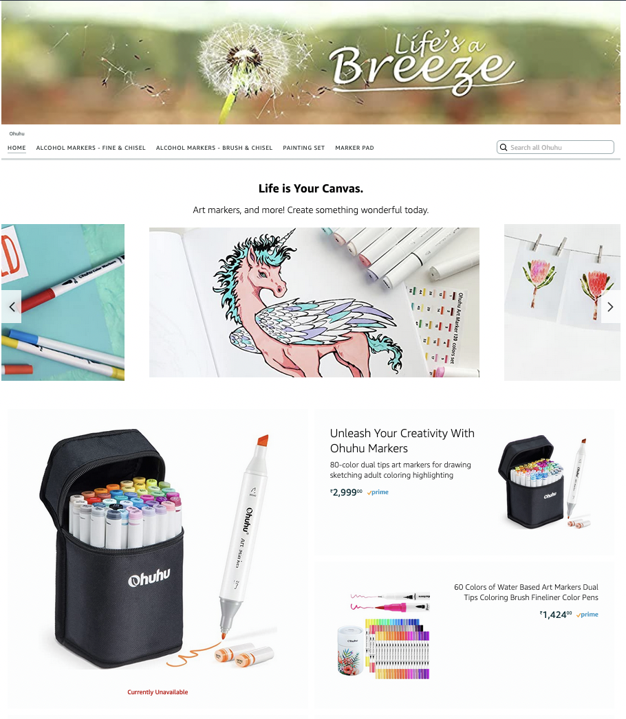 它就是成立于 2010 年,深圳千岸科技旗下的画材品牌——Ohuhu。品牌主营高品质高性价比的绘画类产品及家居用品,站点布局全球,19年入驻印度站,同年就凭借亚马逊销量排名第一的马克笔,一战成名。