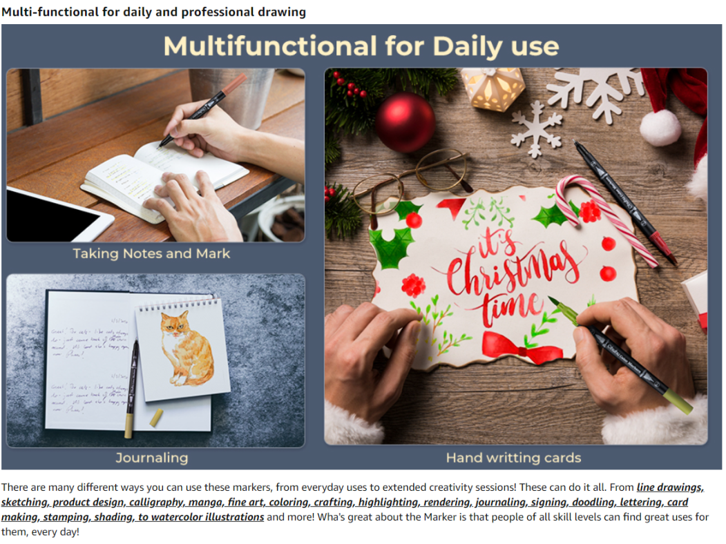 第一个重要工作就是确认需求。如果市场没有需要,那怎么推也推不起来。建议去社交网站直接对话TA,做好一手调研工作。比如,马克笔受众为偏年轻的绘画爱好者,可优选Instagram,Facebook。