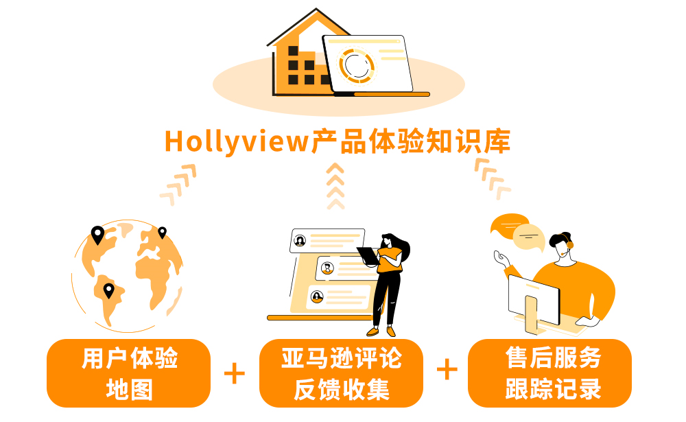 为了更清晰、完整、准确地记录、整理用户的反馈,Hollyview会把亚马逊上所有用户的正面评价与负面评价分别收集,分门别类地归纳整理。再对照Hollyview独有的用户体验地图的流程和售后服务的阶段跟踪进行匹配梳理,通过这三层反馈及数据的收集记录,来建立Hollyview自己的产品体验知识库。
