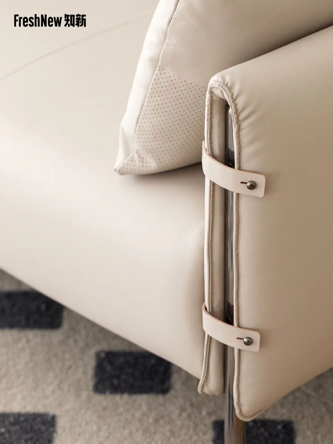 吕墨:相比于传统笨重的皮沙发,班得瑞沙发坐感柔软包容,且自由有力,灵巧的扶手为生活释放出更多空间,将巴黎时装周的时尚元素扣袢,跨界带给家与生活,与精致户型一起爱上品质皮沙发。