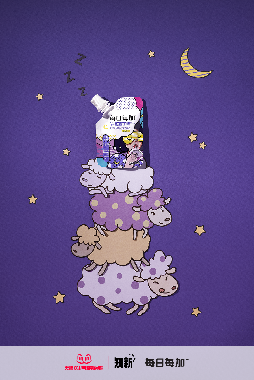 龙翠耘:目前「每日每加」主推的“晚安星光冻”,是一款绑定“睡前”场景的,能舒缓睡前焦虑压力的功能性果冻。