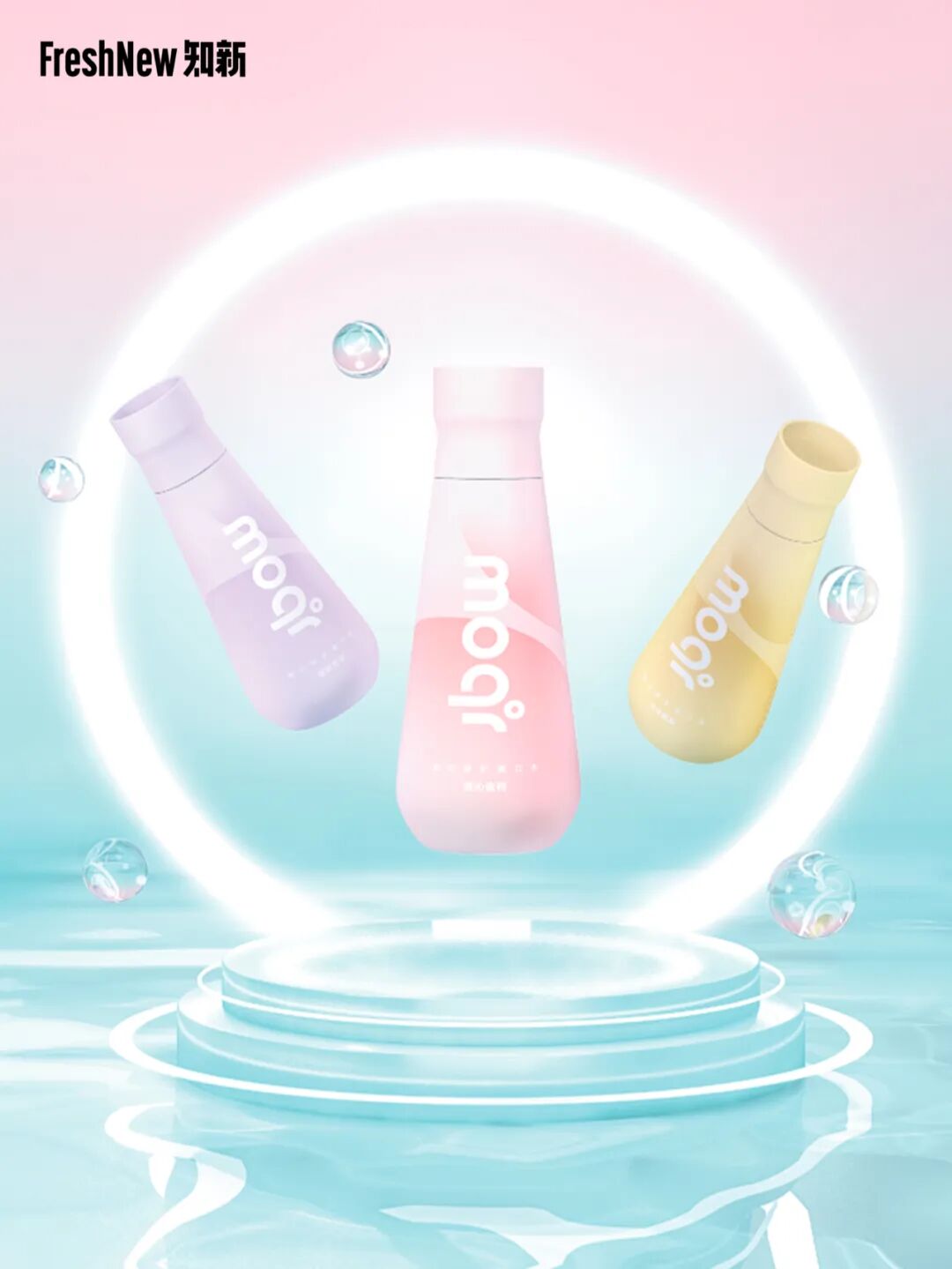 其实,早在品牌创办之初,我们所有的设计就都是围绕着这群年轻人展开的。比如,「moqi」的logo设计就藏了小心思:o属于开原音,念的时候会自然张开嘴微笑;而i则做成伸懒腰的人,与起床漱口产生一定的联系,整体比较有趣,同时富有感召力。在产品研发与口感上,我们也更加趋向于年轻消费群体。