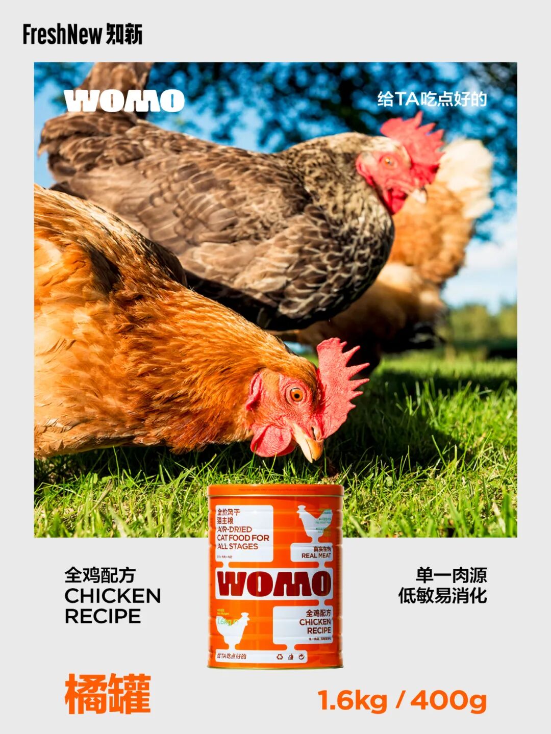 秦适:「WOMO」是一款真正做到0淀粉、0肉粉、0谷物、0诱食剂的高肉高营养风干猫主粮。给TA吃点好的,让猫陪伴更长久。