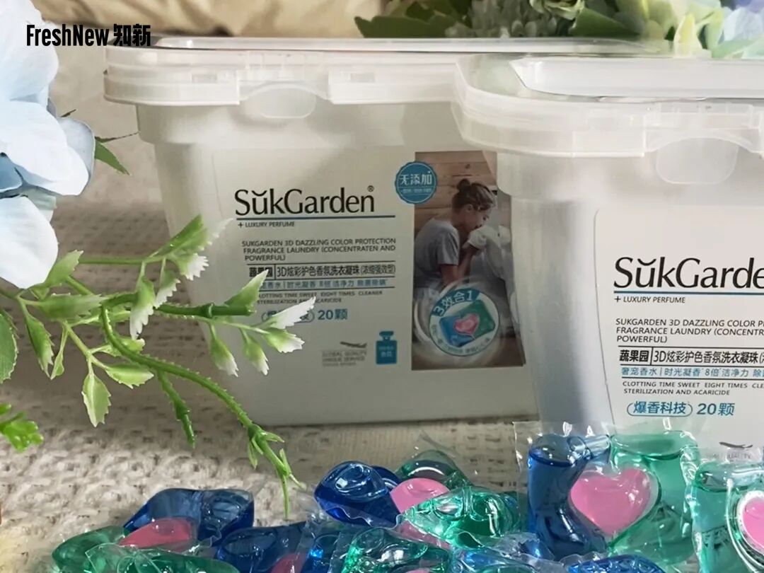 蔬果园品牌团队:「蔬果园」3D炫彩洗衣凝珠,三效合一:蓝色具有8倍洁净力,绿色除菌除螨,粉色持久留香。它是蔬果园的核心主推产品之一,在抖音、天猫等主流电商平台均拿下凝珠热销TOP1。